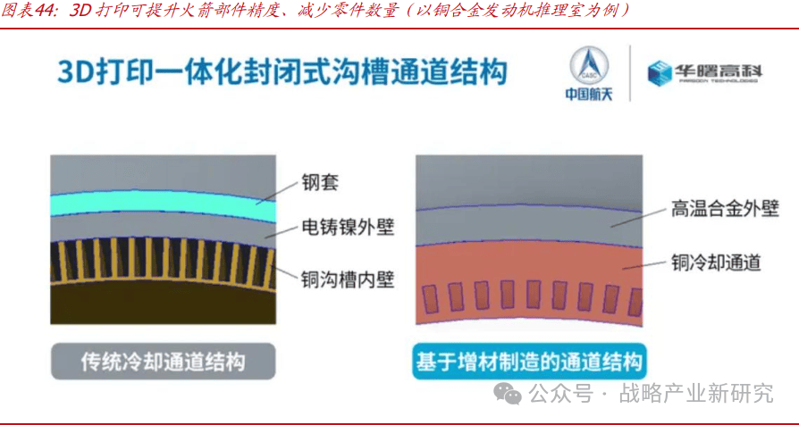 3D 打印手艺已成为火箭策动机等部件的主要出产体例。保守策动机的零件数量动辄成千上万,零件之间的拆卸凡是采用焊接、铆接、螺栓毗连等多种体例,这种方案导致的问题就正在于制制流程长、误差累积大、质量现患多、分量添加多等。并且部门零件还存正在布局复杂、材料加工难的问题,对身手崇高高贵的工人依赖度也极大。3D 打印操纵逐层堆积的道理,可以或许实现肆意复杂构件成形取多材料一体化制制,冲破了保守制制手艺对布局尺寸、复杂程度、成形材料的,同时操纵 3D 打印能够制做出合适设想尺度和利用要求的高细密零件。举例:以星河动力火箭为例,有良多燃料传送的管,保守体例采用弯管,然后再焊接。而焊接的要呈现焊后裂纹,就会带来飞翔的过程的风险。通过 3D 打印的体例,能够一体成型,将管嵌入全体傍边,从而达到优良分歧性,降低利用风险。