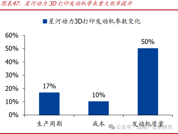 智神星二号CQ-90策动机上,90%以上分量采用3D打印手艺制制。3D打印工艺策动机出产周期缩短至1个月内,为保守模式的1/6,制形成本降至本来的10%,同时策动机分量减轻50%,显著提拔了运载效率和经济性。一台2500N火箭策动机焦点零件的制形成本,从保守工艺的50万元降至3D打印手艺的不到5万元。星河动力正在其50吨级液氧火油策动机中,涡轮泵3D打印件分量占比约65%,发生器3D打印件分量占比约75%,从管90%为3D打印件,推力室3D打印部门占比约30%,阀门壳体类零件约90%为3D打印制制。铂力特2024年贸易航天范畴订单中,星河动力占比超30%。2019年,飞而康科技取星河动力合做,操纵华曙高科金属3D打印处理方案,正在4个月内完成30多件火箭策动机零件的交付;